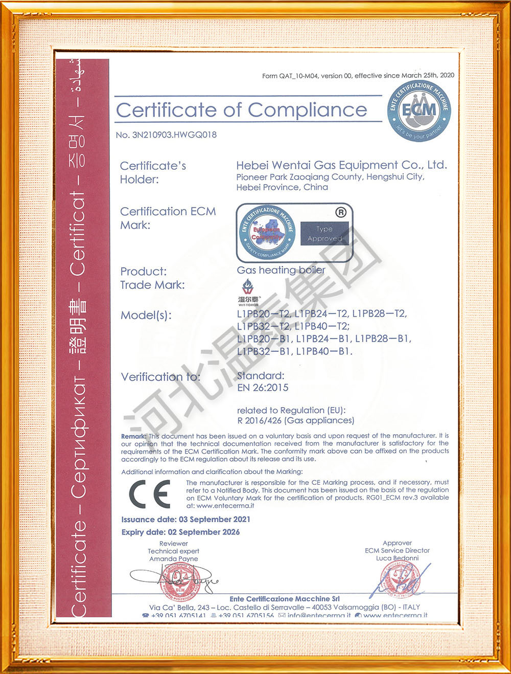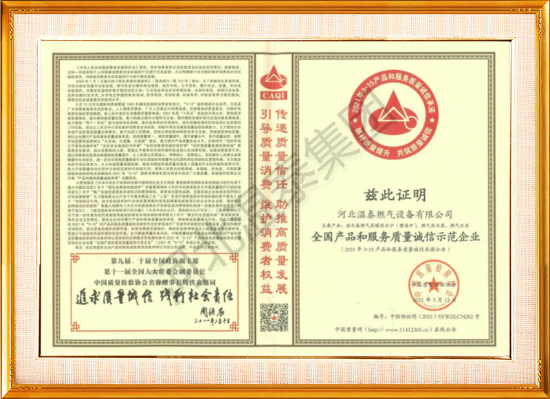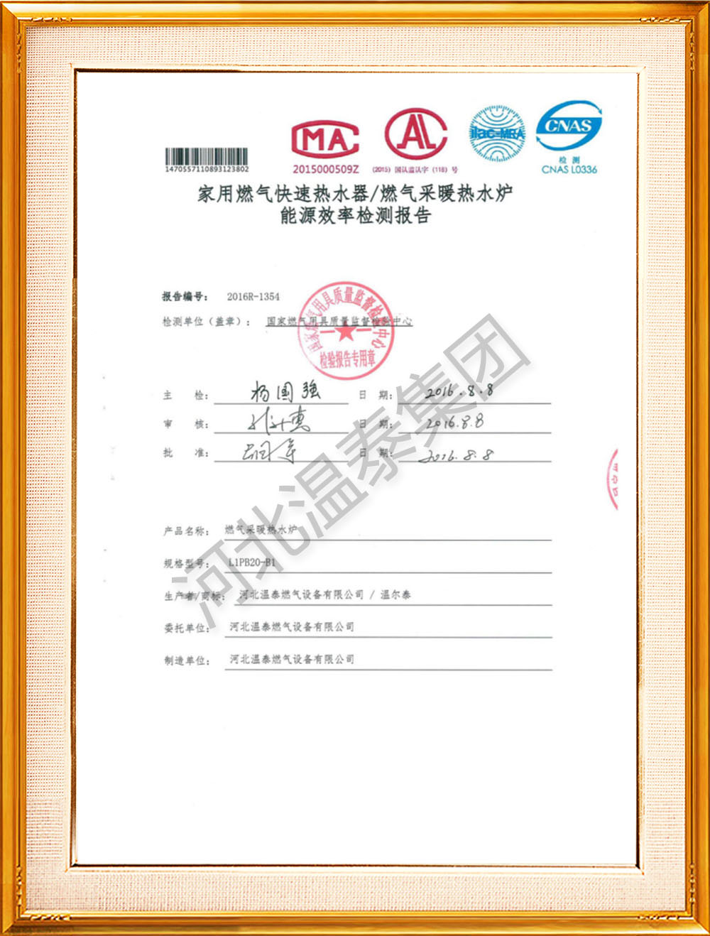 產品質量均達到并優于國家GB25034-2010《燃氣采暖熱水爐》標準要求